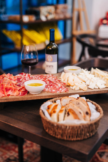 Naše toskánská prkénka nabízejí výběr nejlepších salámů, prosciutta a toskánských sýrů, které dokonale podtrhnou chuť vína.